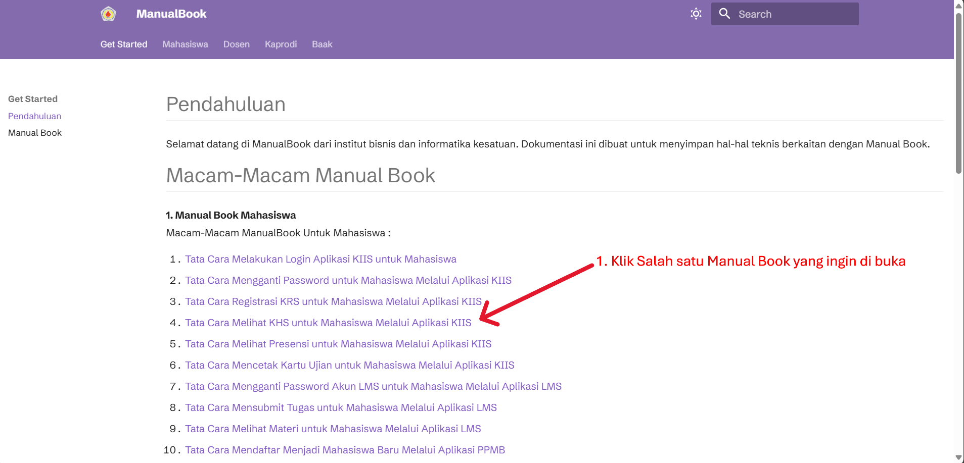 - Pertama, Pengguna memilih Manual Book yang akan di buka.