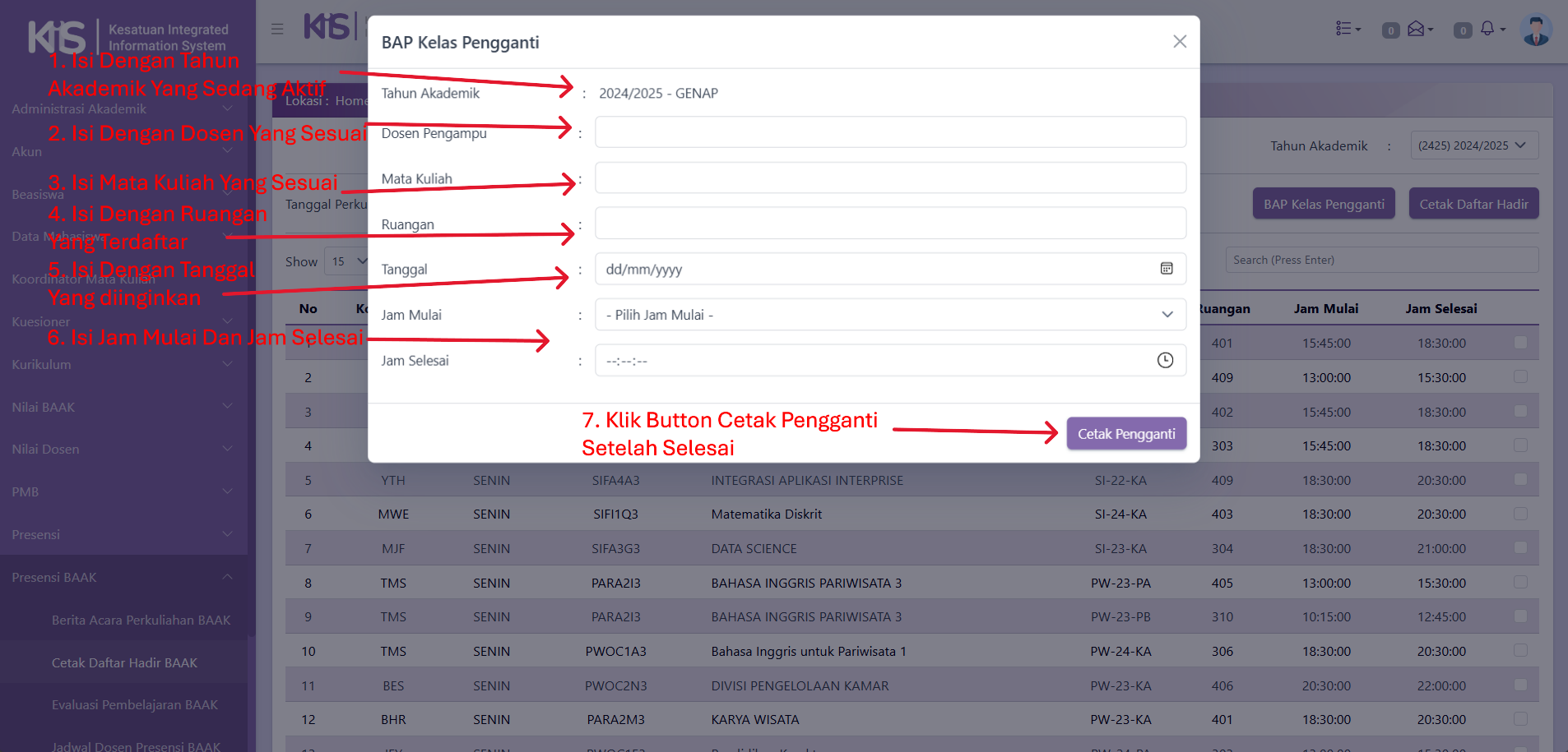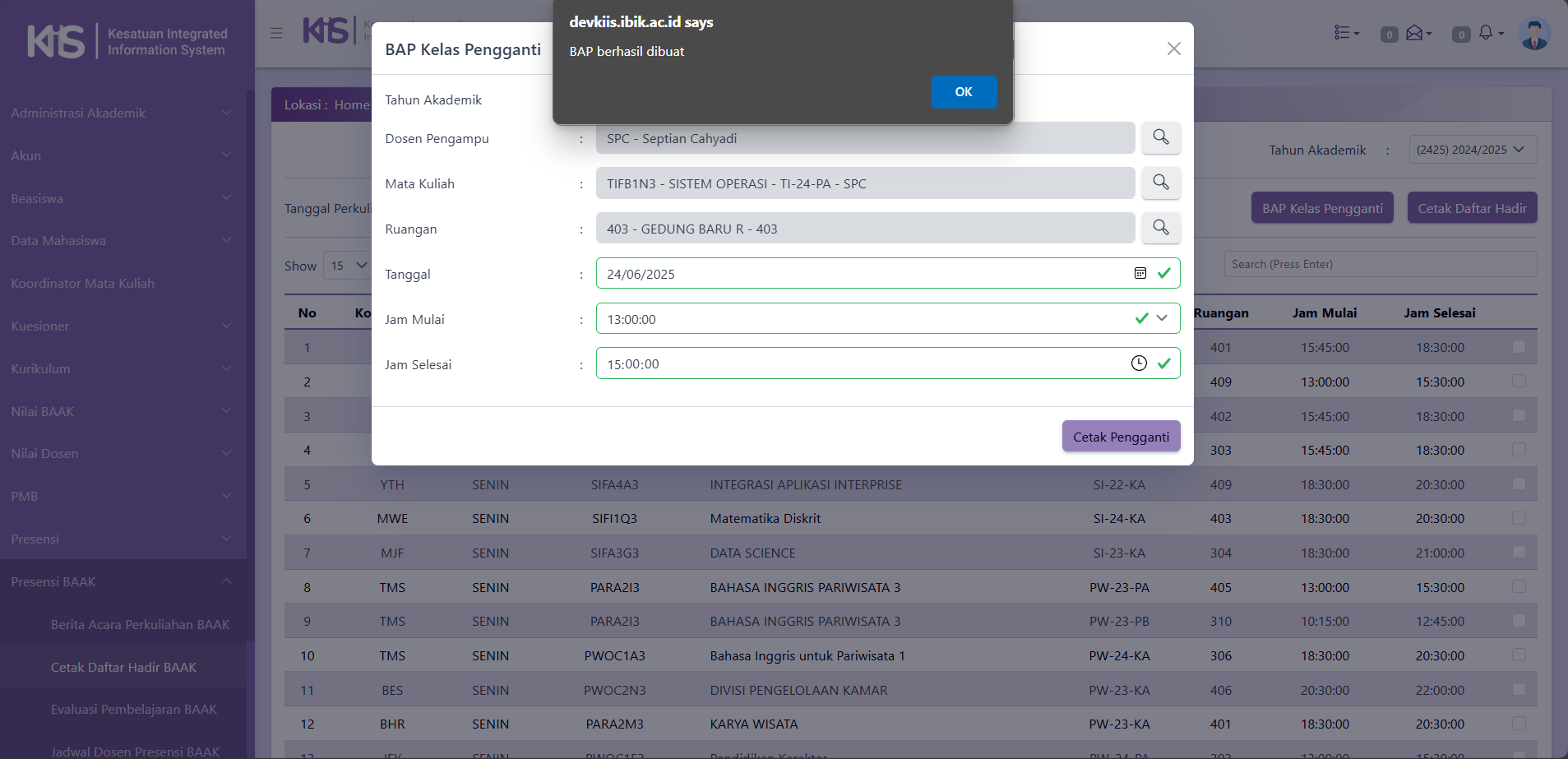 Panduan Mencetak BAP Kelas Pengganti Via KIIS