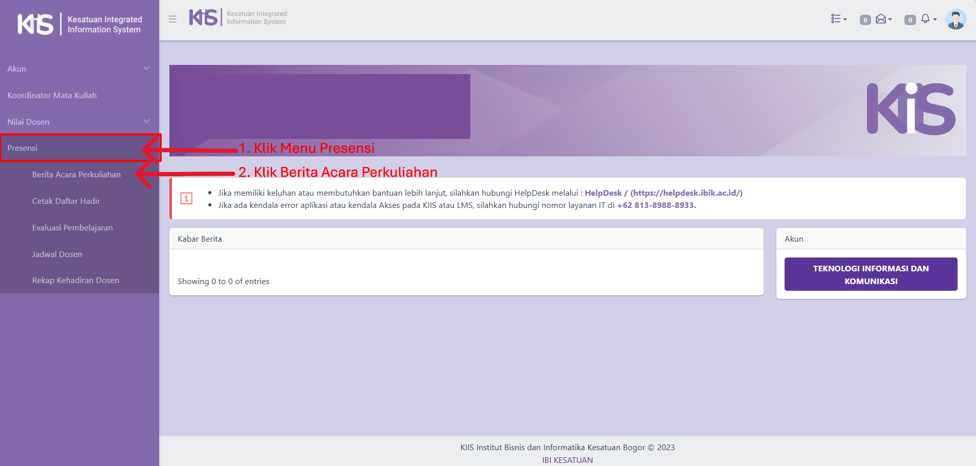 - Pertama, Klik Menu Presensi, Setelahnya Klik Berita Acara Perkuliahan.