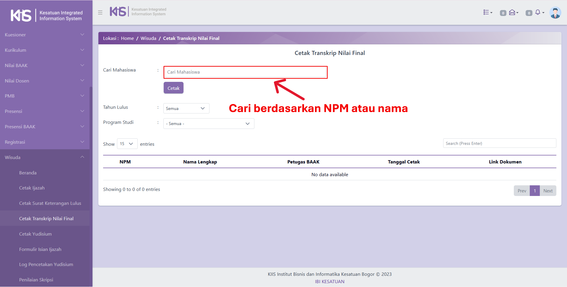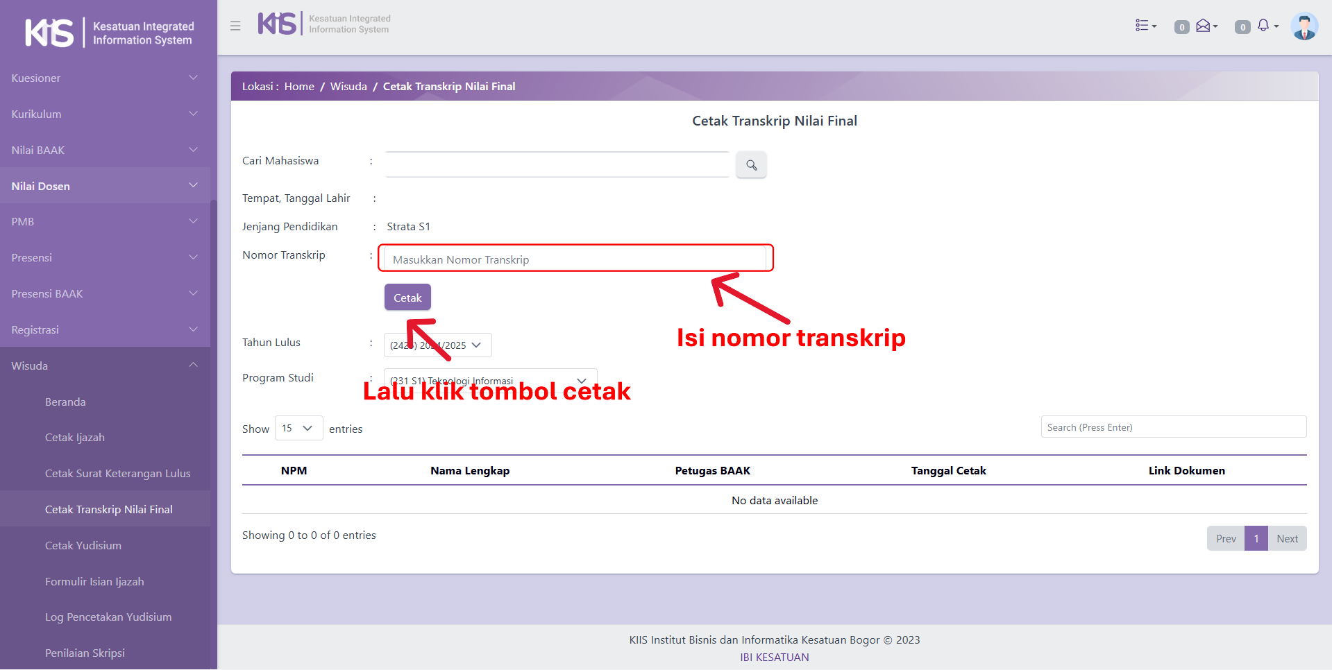 Panduan Cetak Transkrip Nilai Final Via KIIS