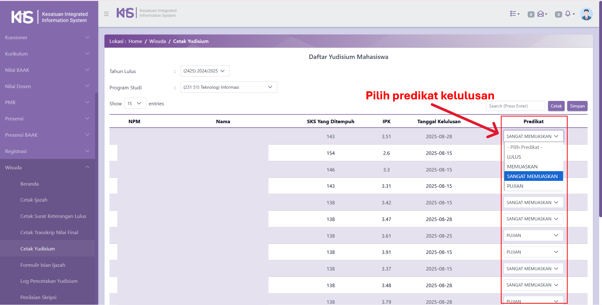 Selanjutnya tentukan Predikat Kelulusan sesuai aturan akademik.