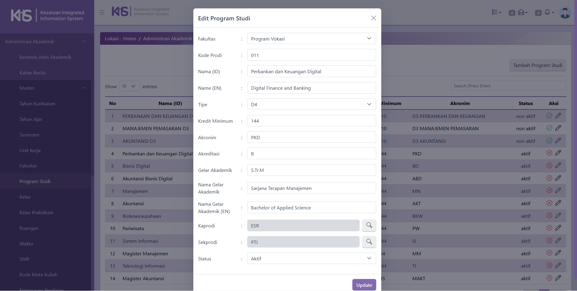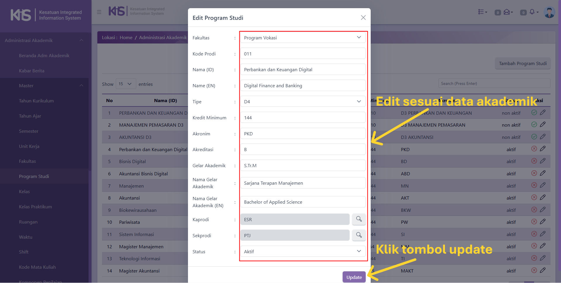 Jika data Program Studi belum lengkap, maka isi bagian form Edit Program Studi.