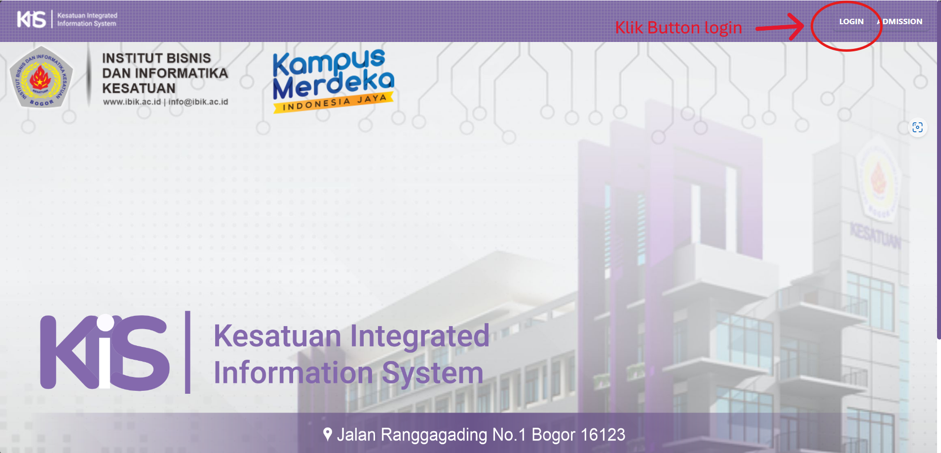 KIIS adalah singkatan dari Kesatuan Integrated Information System yang dikembangakan oleh Tim Pengembang Teknologi Informasi, Institut Bisnis dan Informatika Kesatuan (IBIK). Berikut ini merupakan Tata Cara BAAK Melakukan Login pada aplikasi KIIS. Mohon pastikan Baak untuk mengingat Kode Nomor Induk Pegawai (NIP) agar dapat melakukan LOGIN melalui aplikasi KIIS.