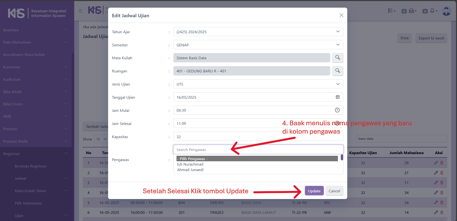 - Keempat, Baak Menulis Nama Pengawas yang baru di kolom pengawas.