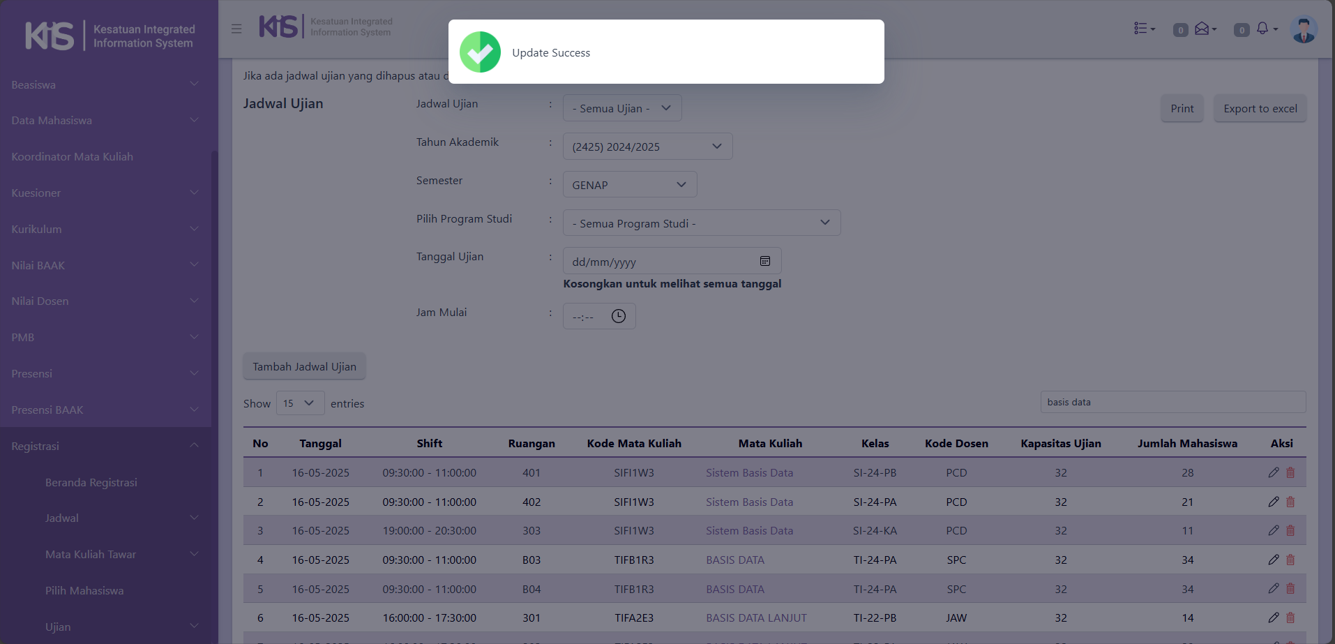 Tampilan Setelah BAAK Klik Menu Jadwal Ujian