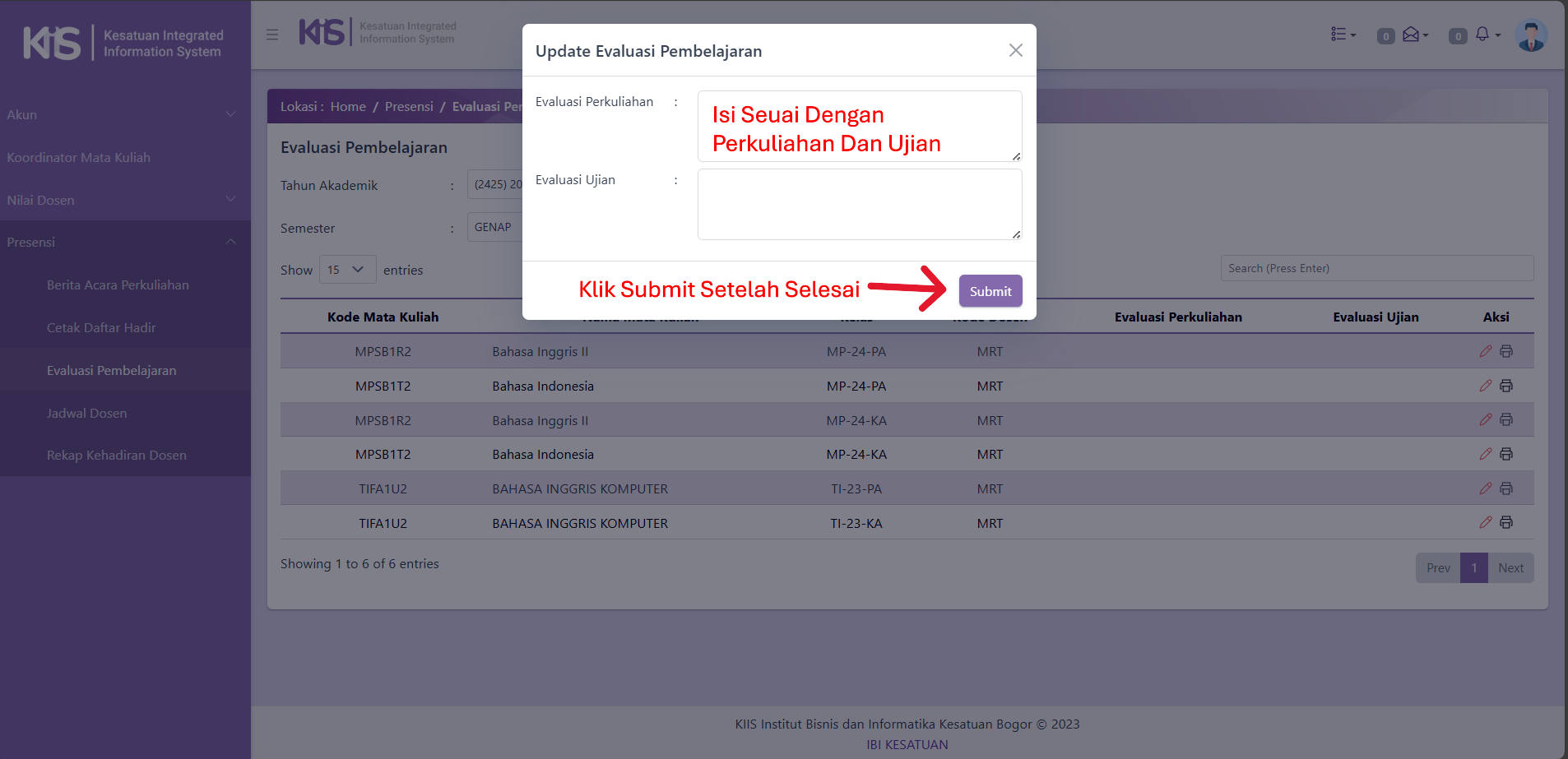 Cara Dosen Submit Evaluasi Pembelajaran