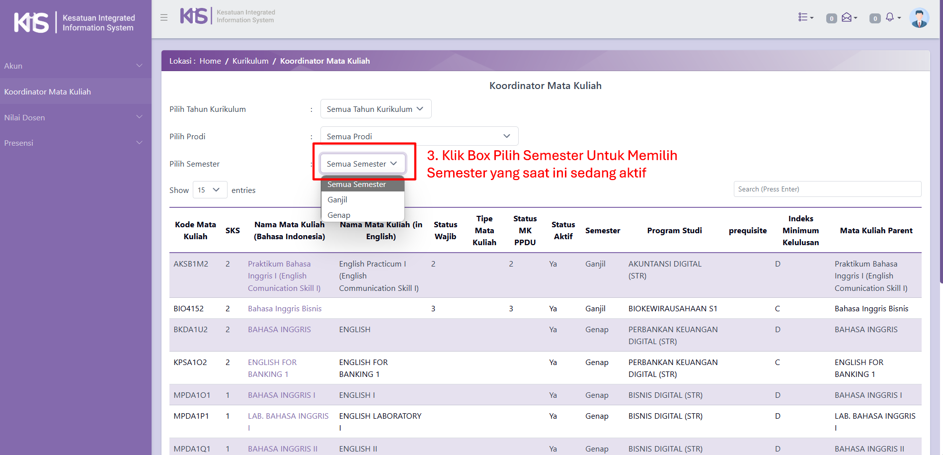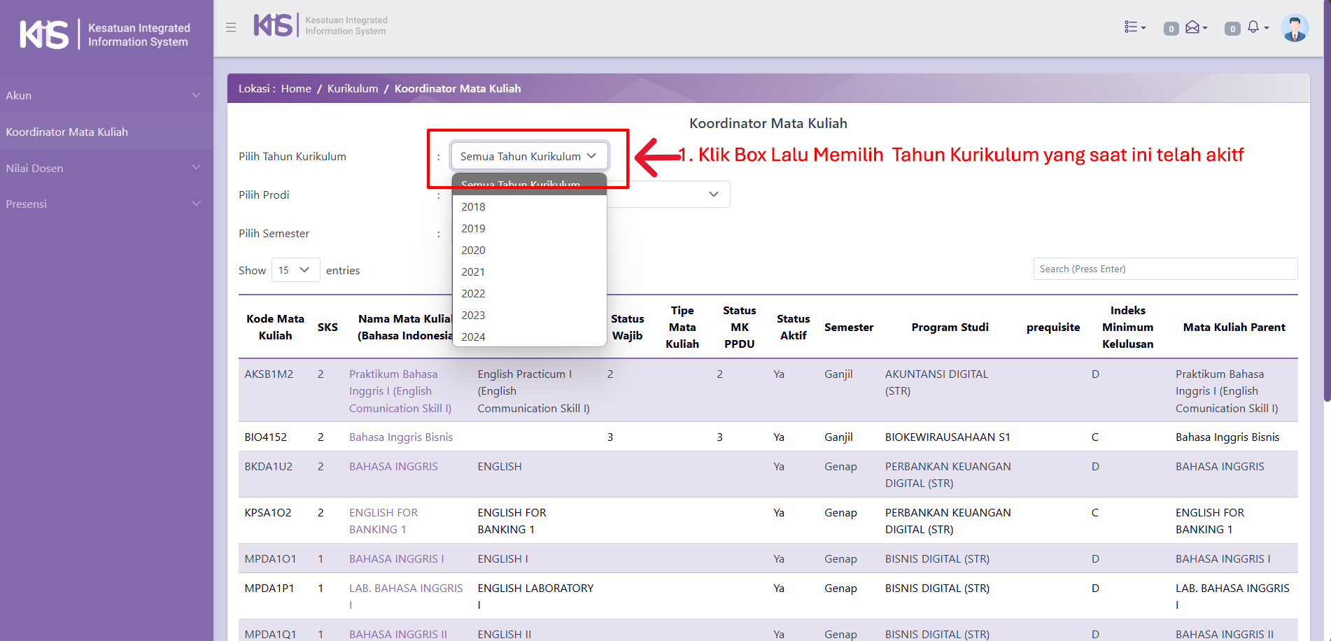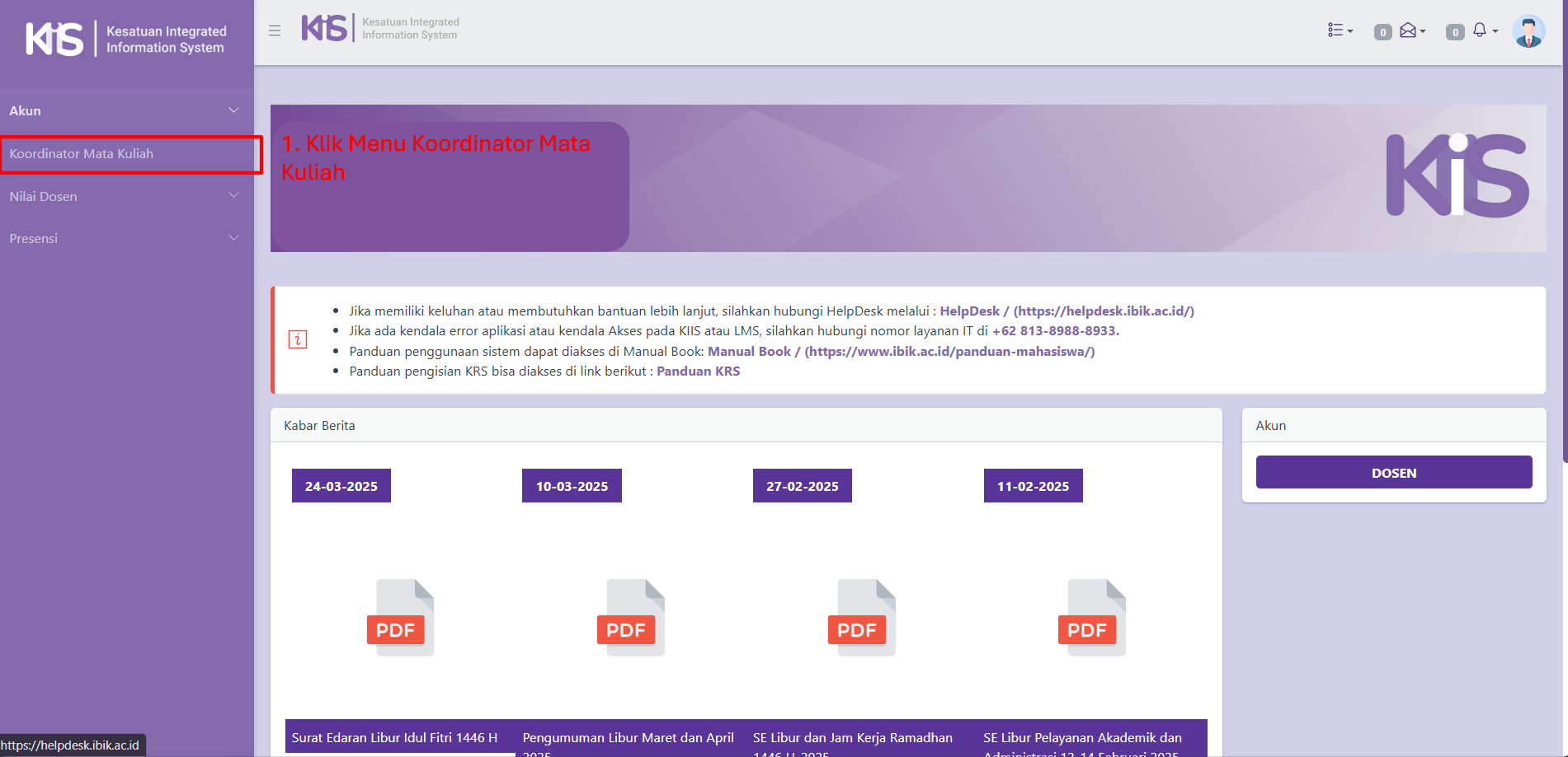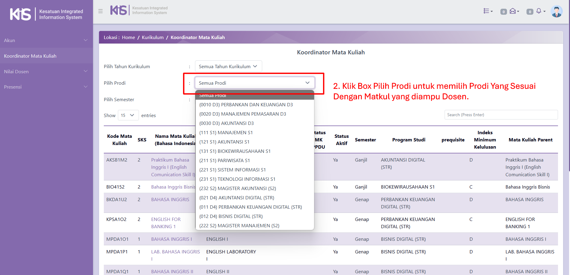 Cara Mengakses Menu Koordinator Mata Kuliah