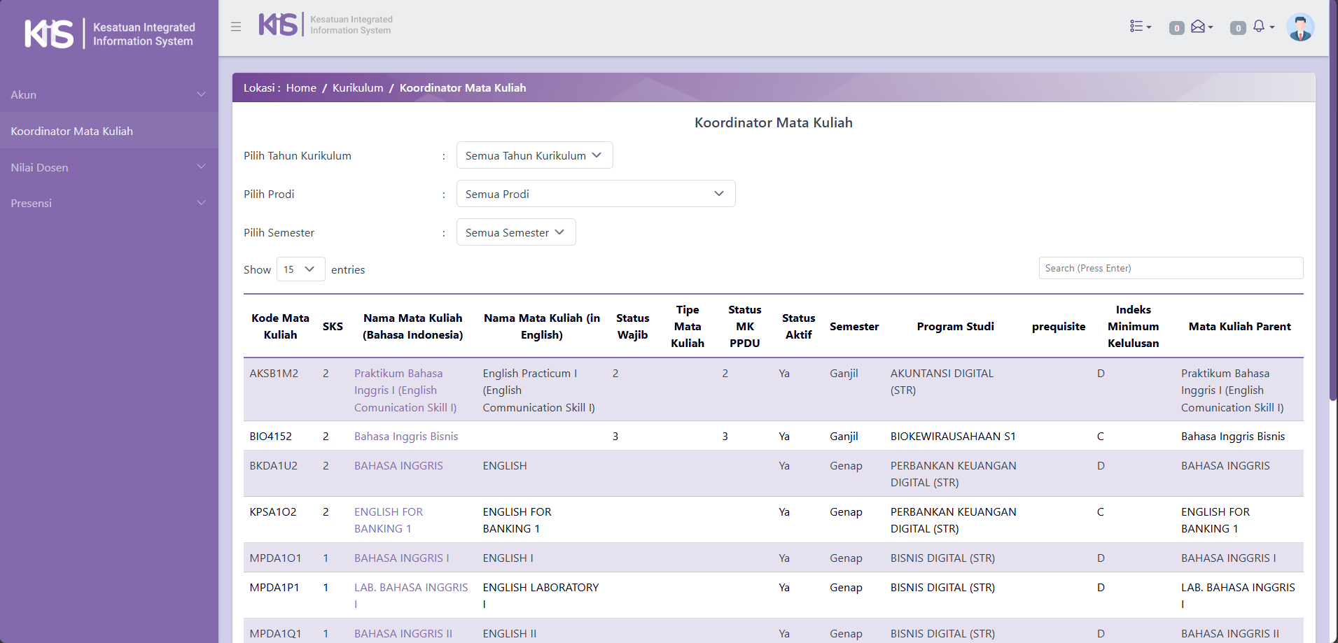 Panduan Melihat Koordinator Mata Kuliah Via KIIS