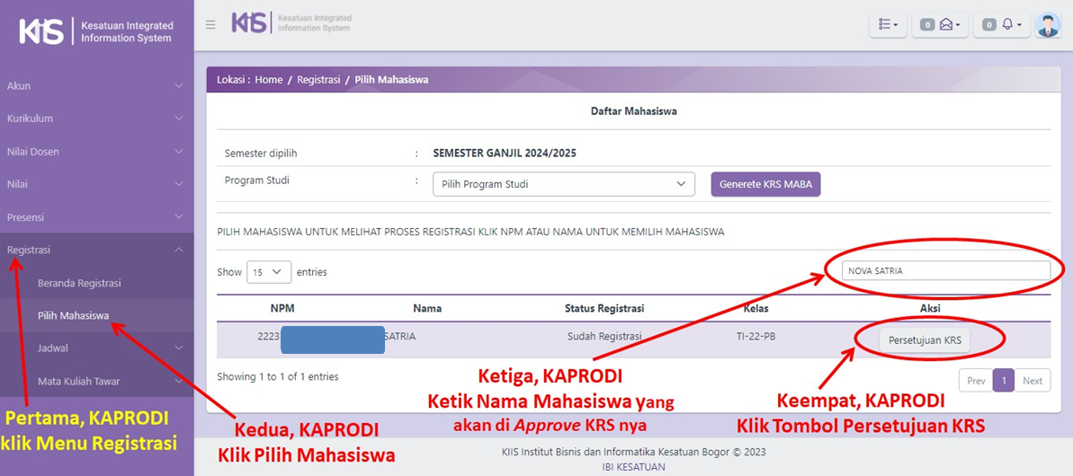 Elaborasi tata cara KAPRODI approve KRS Mahasiswa adalah sebagai berikut: