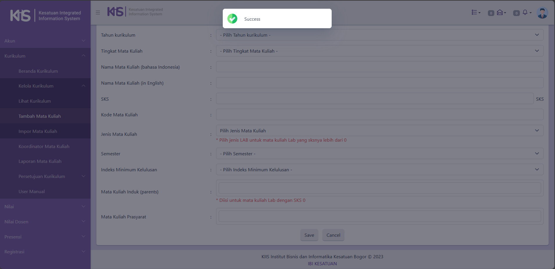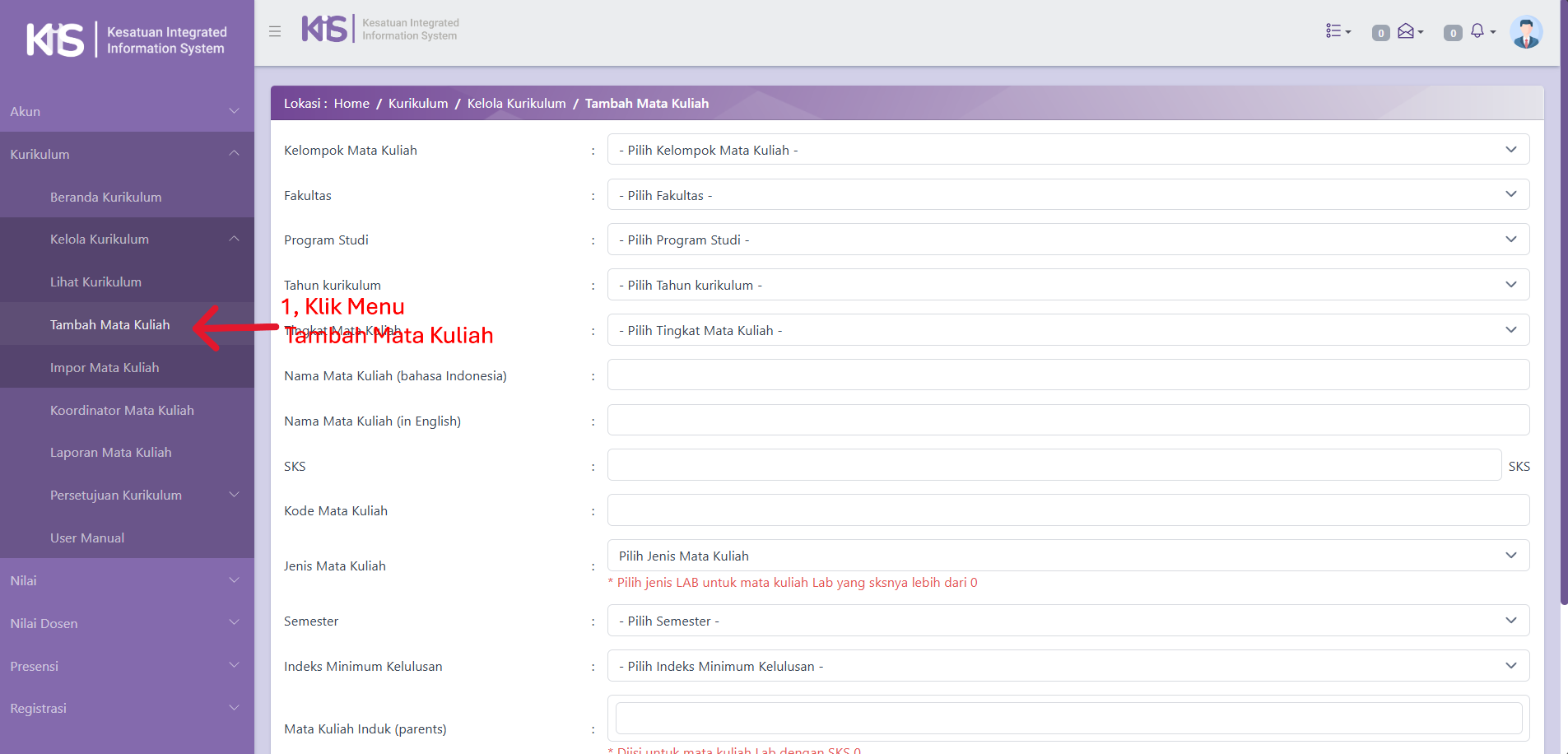 Cara Kaprodi Menambah Mata Kuliah