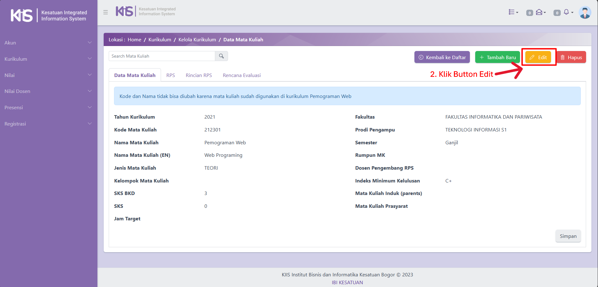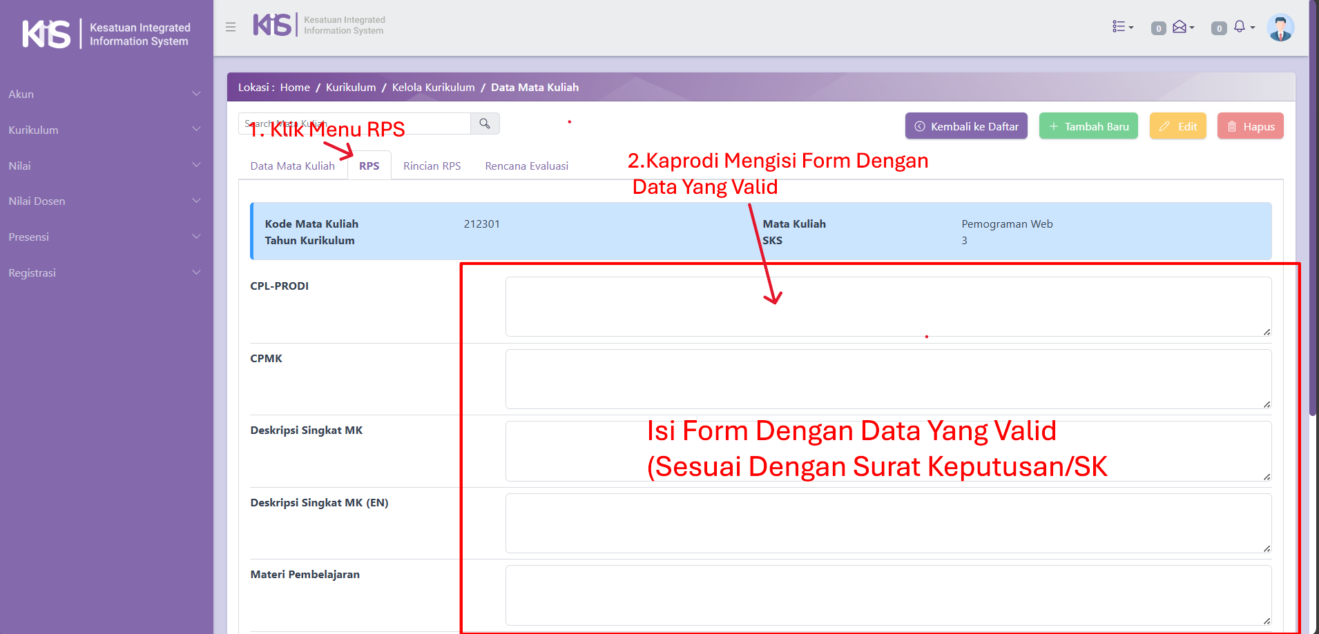 Cara Kaprodi Mengedit Data Mata Kuliah Dan Mengisi RPS