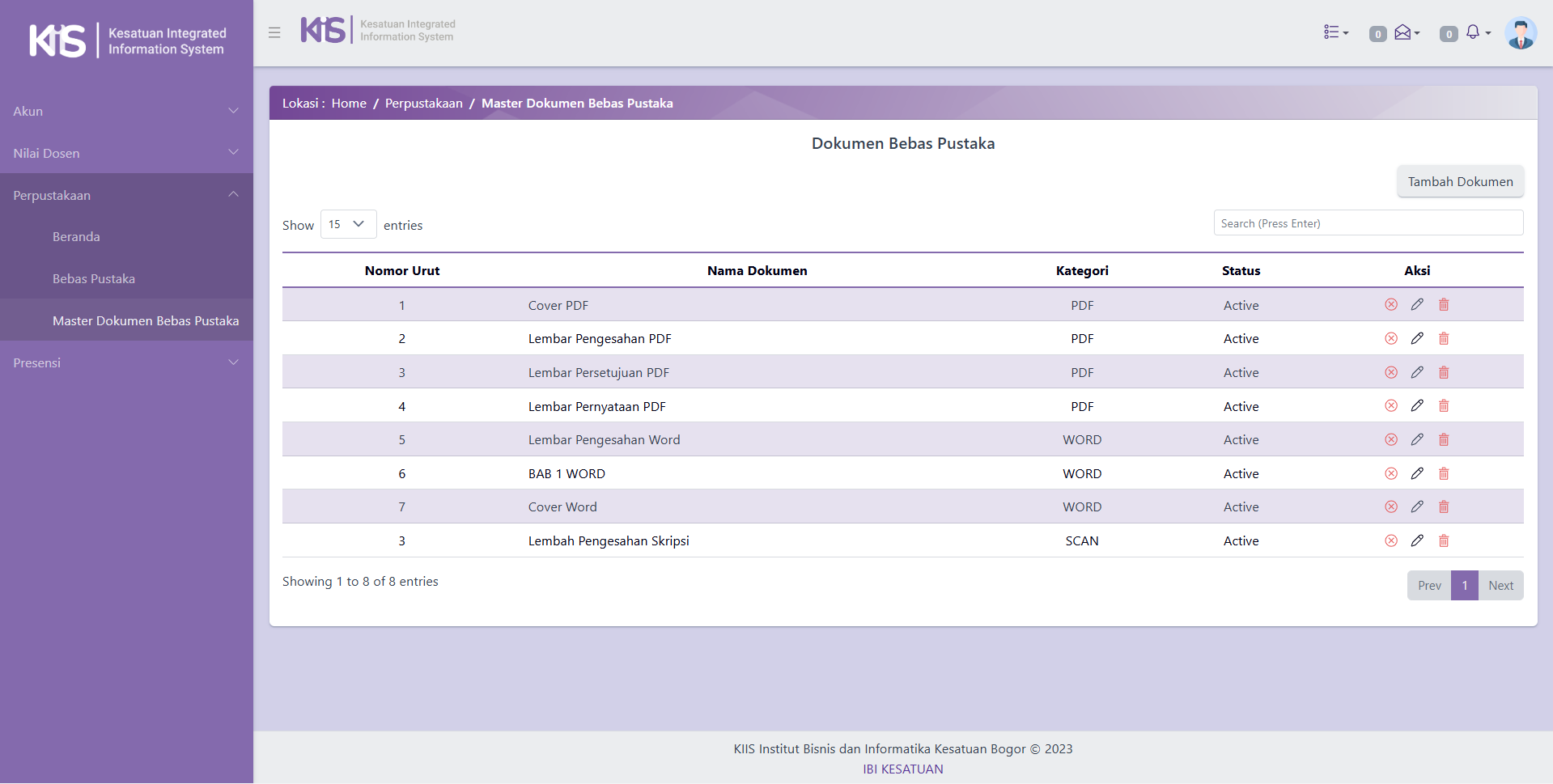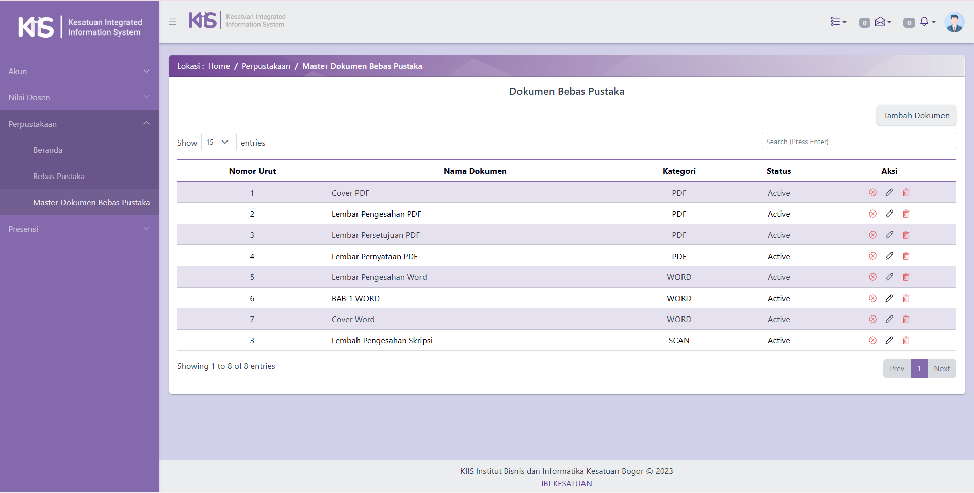 - Tampilan antarmuka (user interface) ketika berhasil klik menu Master Dokumen Bebas Pustaka pada aplikasi KIIS.