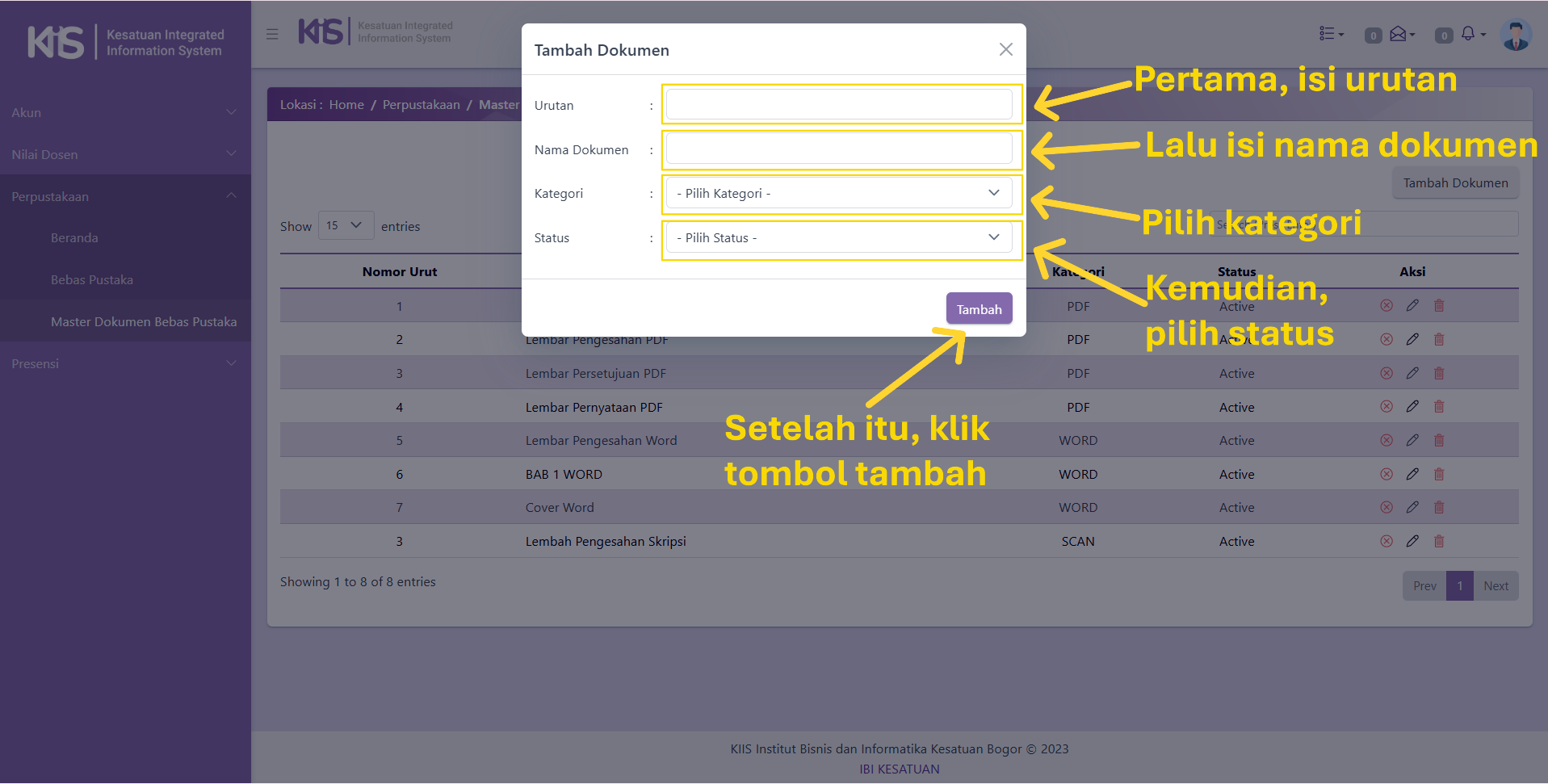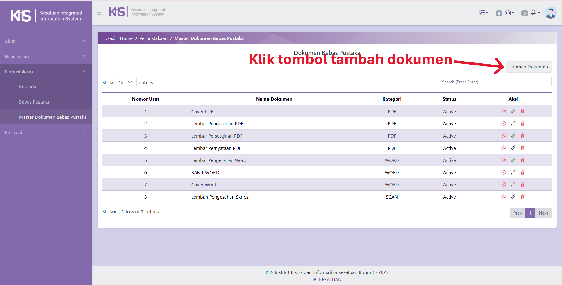 Panduan untuk Menambahkan Master Dokumen Bebas Pustaka Via KIIS